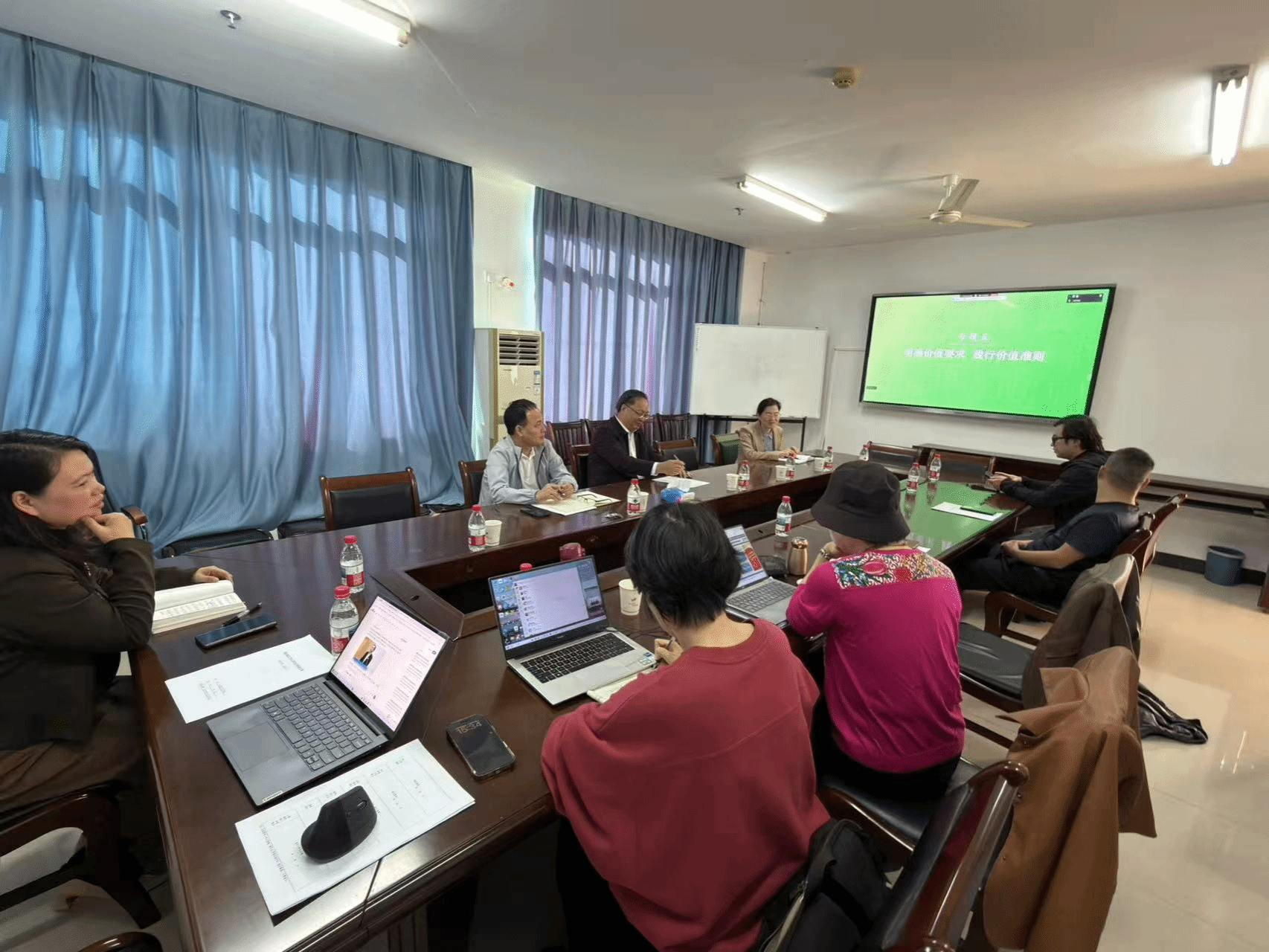 教研室成员周细波、陶欢英、陈华、王俊延、牛玉以及本学期讲授德法课的教师代表丁艳平、文金顺就林罗添骥的授课进行了交流分享。与会教师围绕学情适配优化、案例教学创新等问题展开研讨,分享教学中的经验做法及改进措施。