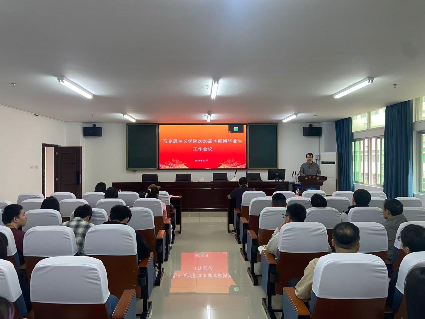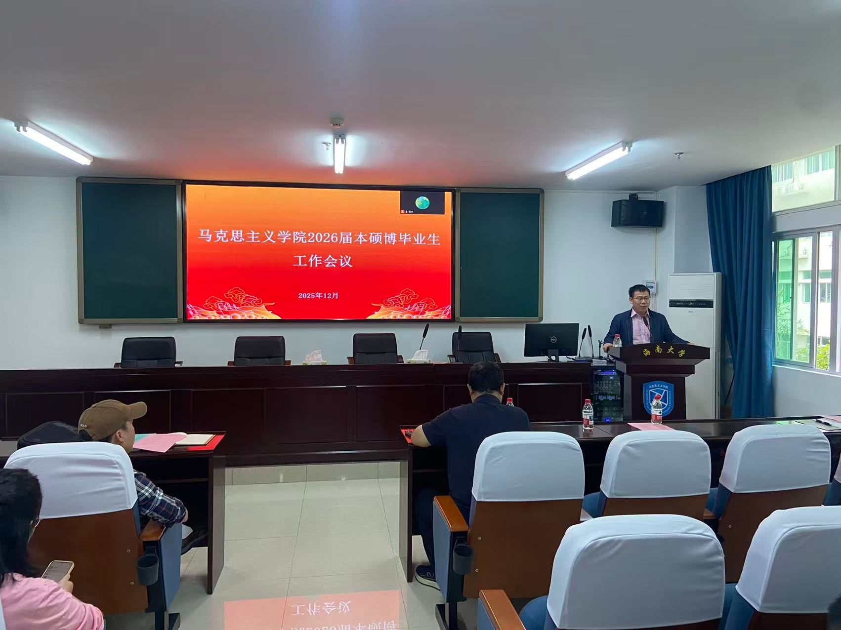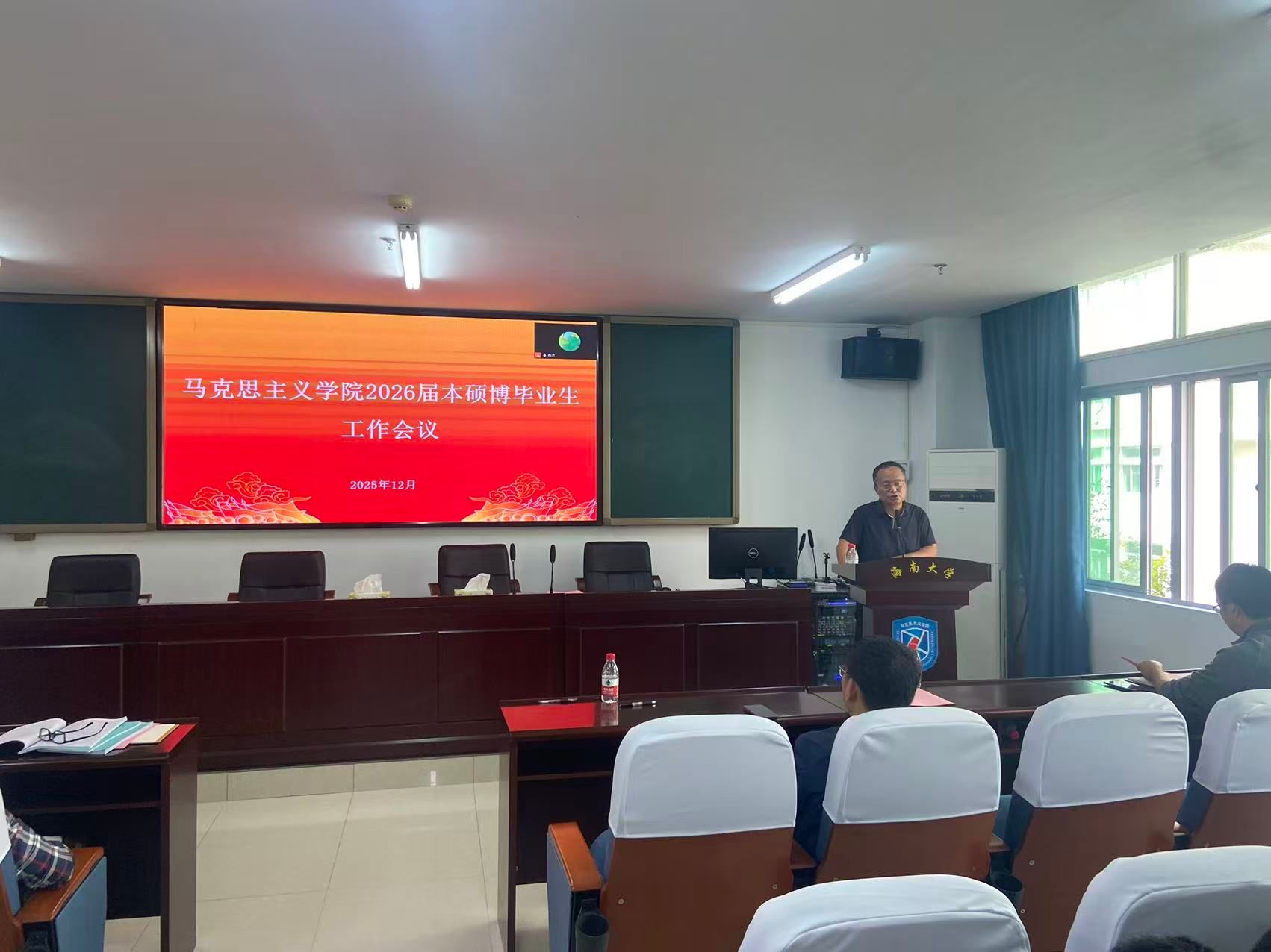 12月23日上午,437必赢国际线路2026届本硕博毕业生工作会议在社科楼A309召开。学院副院长(主持工作)王善、党委副书记王群生、副院长温小平,相关教师代表及2026届本硕博毕业生参加会议。会议由王群生主持。