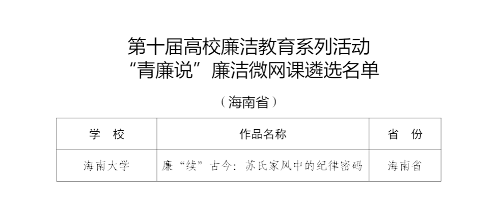 近日,教育部正式发布第十届高校廉洁教育系列活动的遴选结果。我院创作申报的作品《廉“续”古今:苏氏家风中的纪律密码》成功入选“青廉说”廉洁微网课优秀作品100件名单。