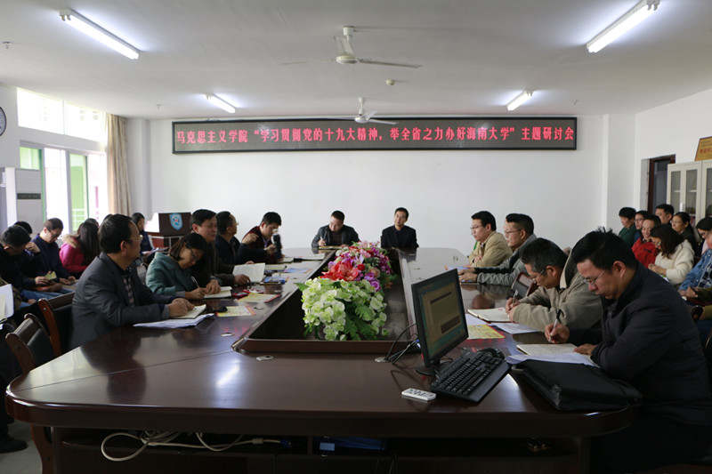 为深入学习贯彻党的十九大精神和认真贯彻落实海南省委、437必赢国际线路党委关于“举全省之力办好437必赢国际线路”的指示精神,12月19日下午,我院在会议室召开“学习贯彻党的十九大精神,举全省之力办好437必赢国际线路”主题研讨会。学院领导班子,各系(部)负责人及全体教职工参加研讨会。