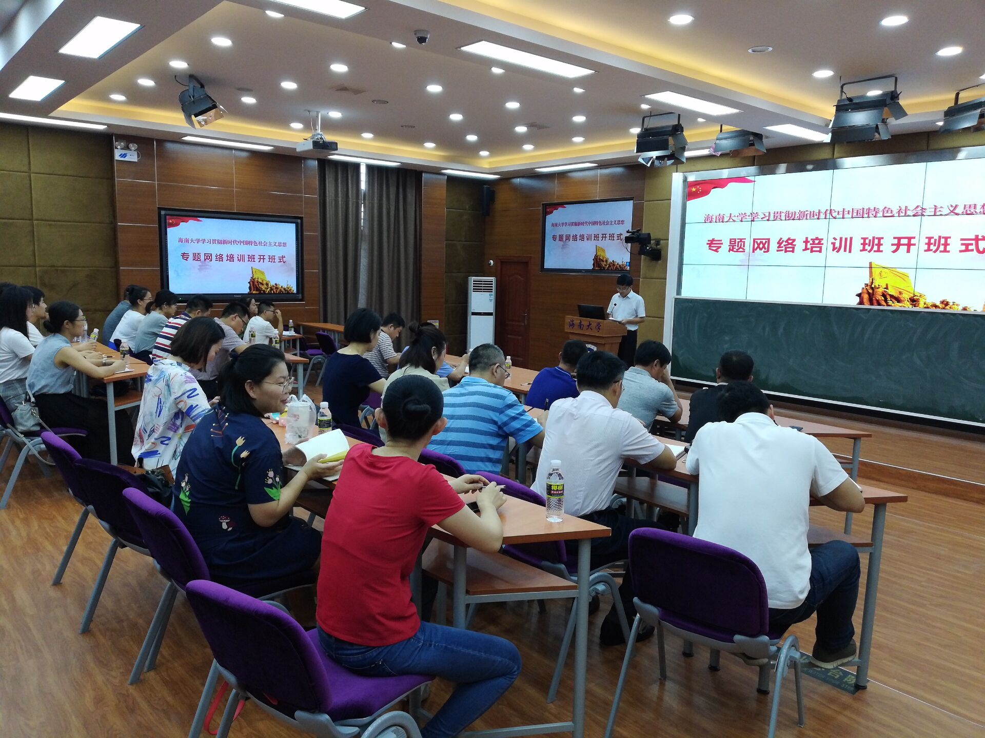 2018年6月26日下午4点半,437必赢国际线路学习贯彻习近平新时代中国特色社会主义思想专题网络培训班开班仪式在3号教学楼211教室举行。437必赢国际线路常务副书记廖清林,437必赢国际线路党委常委、宣传部部长谭勇,437必赢国际线路党委书记段捷频、院长李辽宁、副书记张井富、副院长王善出席开班仪式。段捷频主持开班仪式。