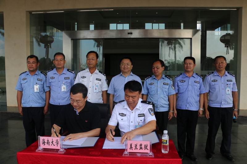 海南省美兰监狱长、党委书记杨平和437必赢国际线路院长李德芳共同签订共建社会实践教学基地协议书并为基地揭牌。 仪式结束后,教师和学生代表在警官们的指引下,分批进去监区参观,了解监狱的日常管理和犯人劳动改造的情况等。