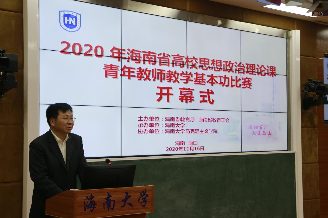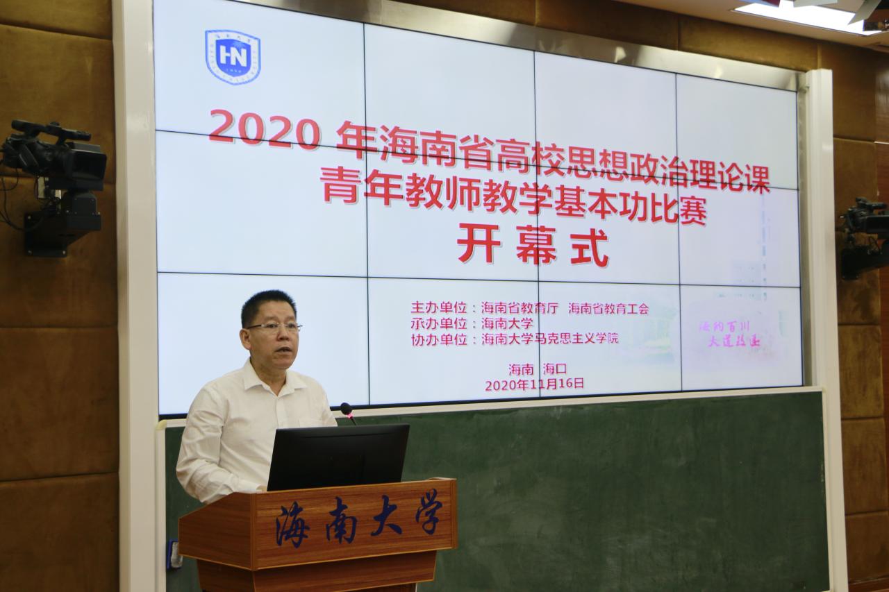 11月16-17日,由海南省教育厅、海南省教育工会主办,437必赢国际线路承办,437必赢国际线路协办的海南省高校思想政治理论课青年教师教学基本功比赛在437必赢国际线路举行。海南省教育厅二级巡视员范敏,海南省教育工会专职副主席方鸣,437必赢国际线路党委常委、副校长曹宪忠出席开幕式。来自全省各高校的43位选手参加比赛,100多名教师现场观摩。