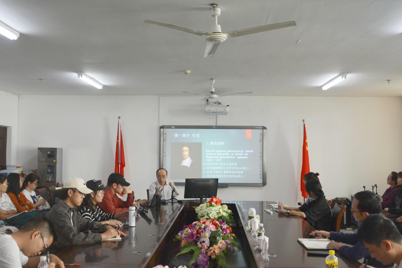 黄启祥教授的学术报告会主题明确、内容翔实、生动有趣,引发现场师生们的深入思考。并以自己丰厚的知识储备和开阔的理论视野让同学们了解斯宾诺莎哲学与神学的关系。在最后的学术交流提问环节,现场学生积极互动,踊跃提问,黄教授认真听取并一一解答。他丰富的学识,生动有趣的讲解赢得了师生热烈的掌声。
